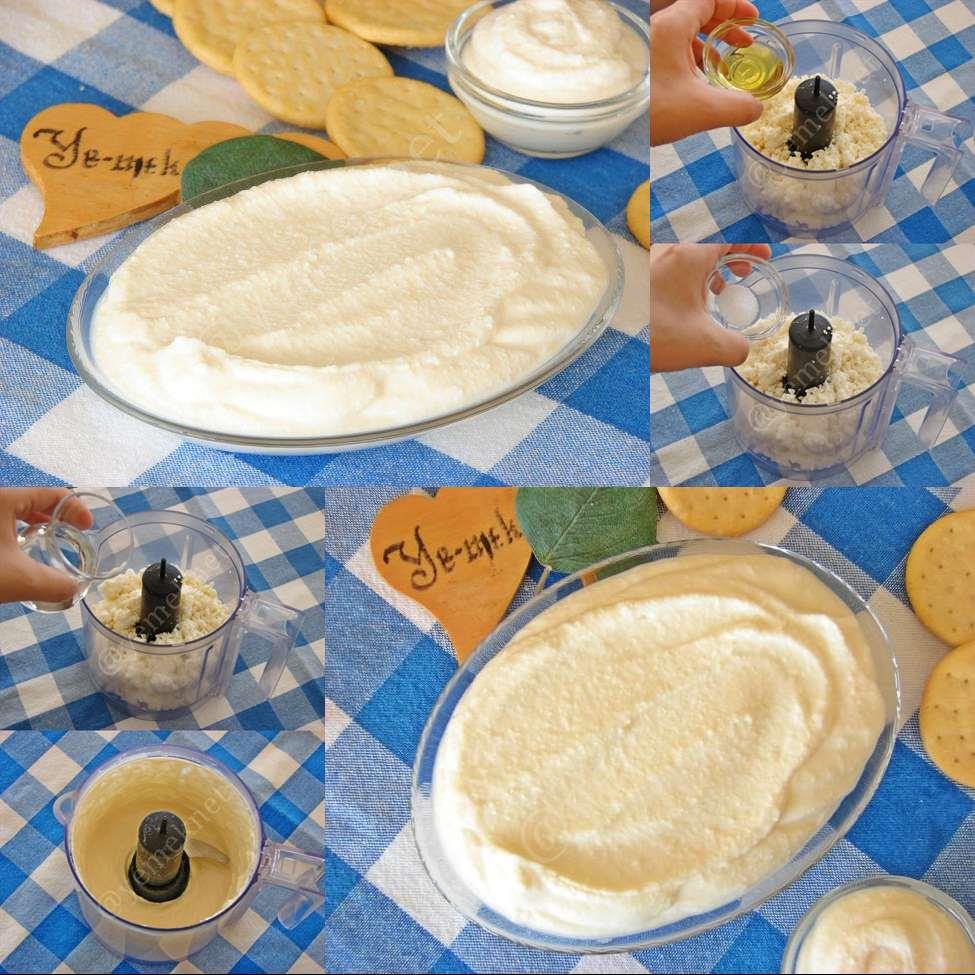 Daha sonra lor peynirin üzerine 1 tutam tuz ekleyin. Ardından yarım çay bardağından biraz az su dökün. Tüm malzemeleri pürüzsüz bir kıvam alana kadar mutfak robotundan iyice geçirin. Eğer pürüzsüz bir kıvam yakalamadıysanız su miktarını azar azar arttırıp, istenilen kıvamı elde edebilirsiniz.